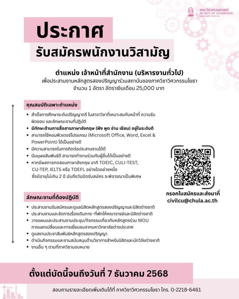 ประกาศรับสมัครงานพนักงานวิสามัญ